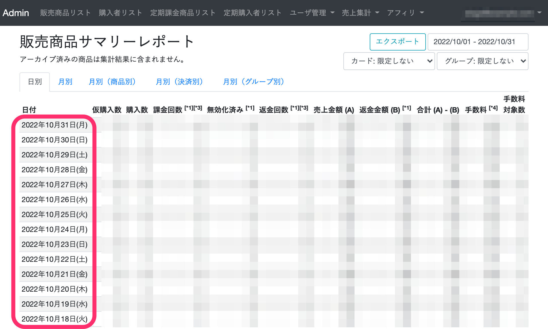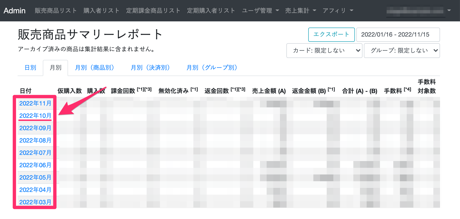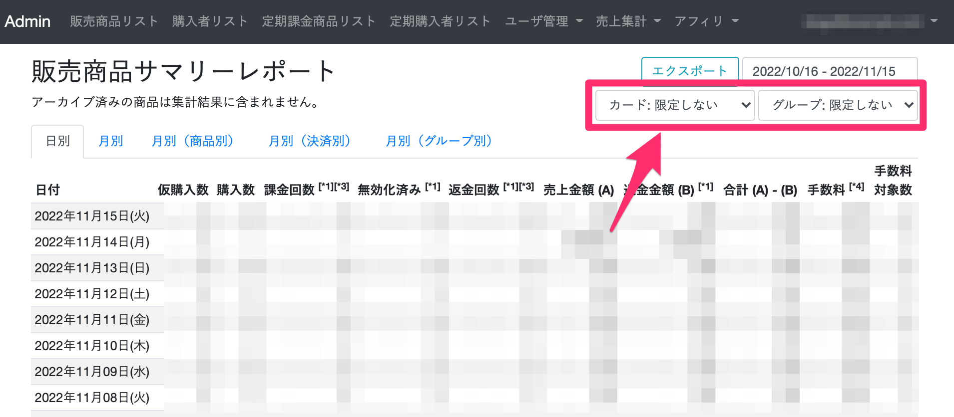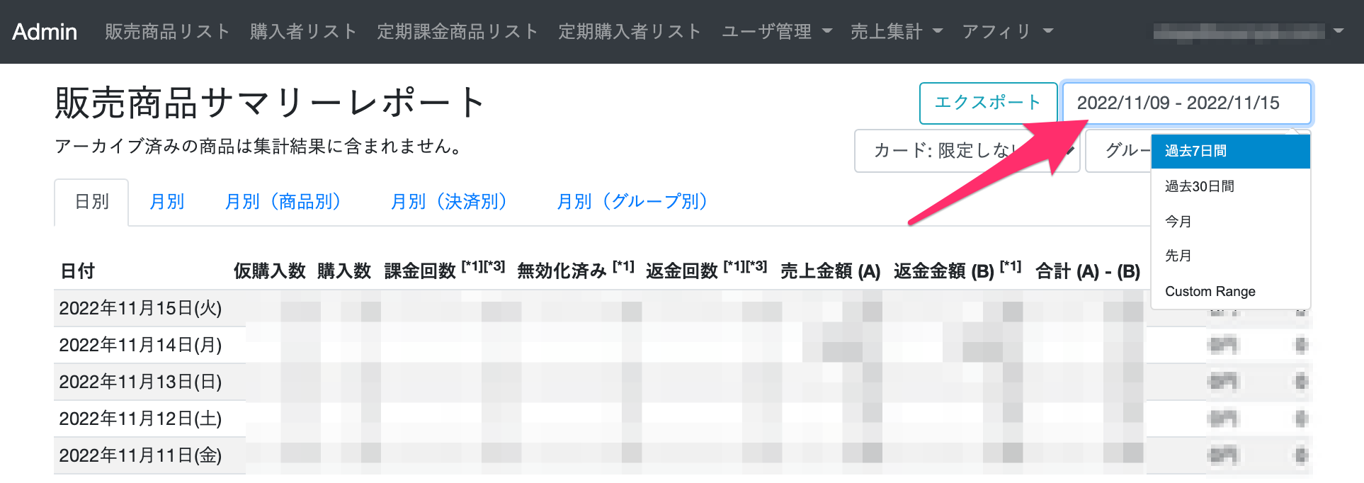 アーカイブ済みの商品は集計結果に反映されないので注意しましょう。