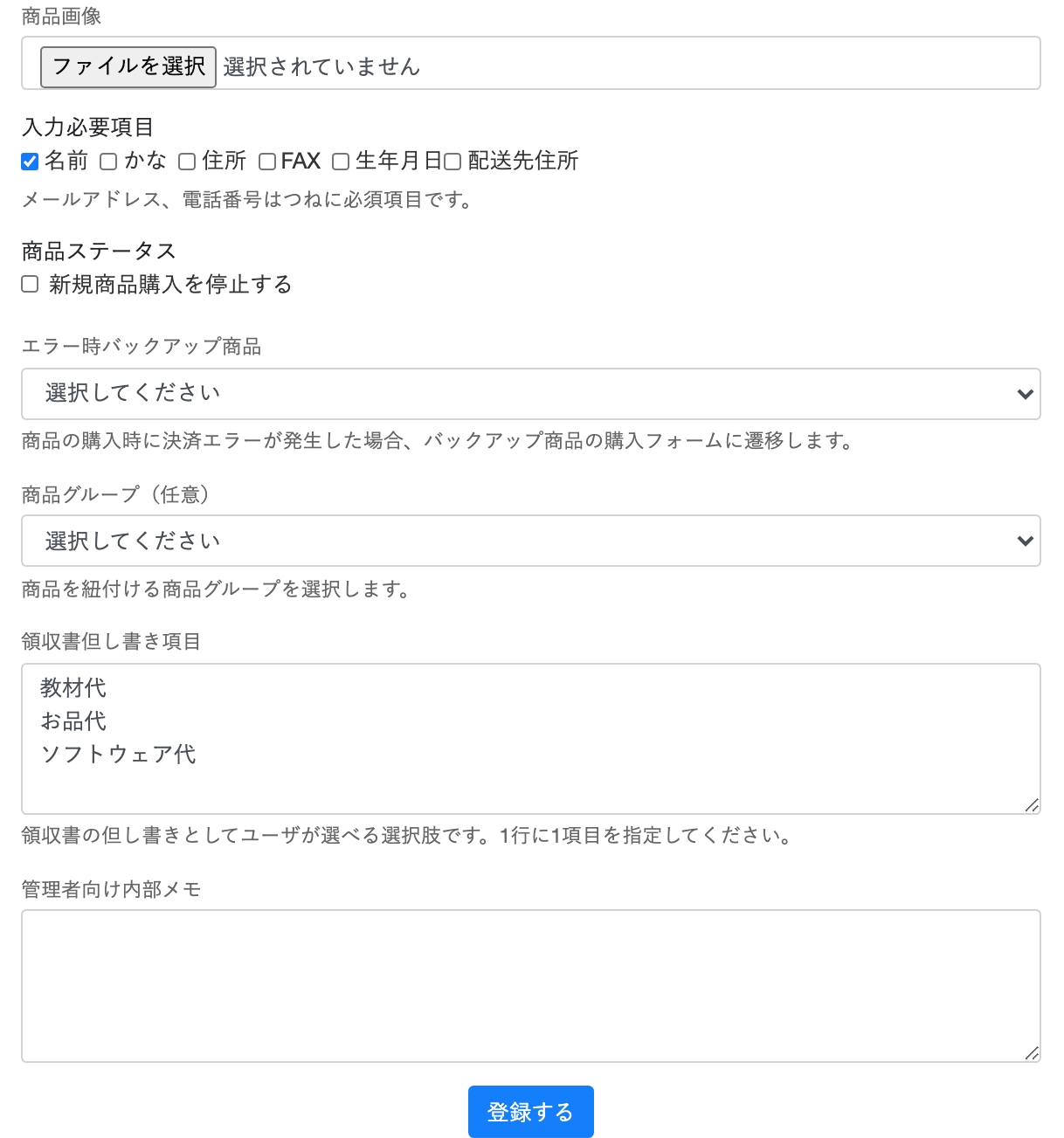 - 「管理者向け内部メモ」には、購入者は見ることのできないメモを残すことができます。