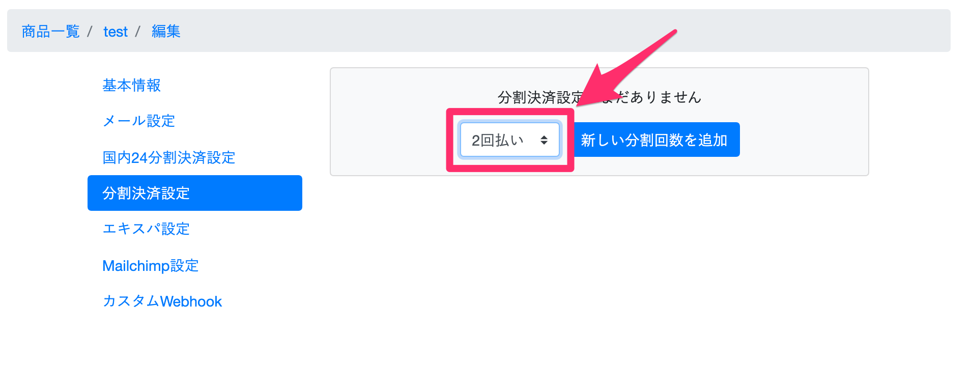 画像の赤く囲われた箇所をクリックすると何回払いにするかを選べます。