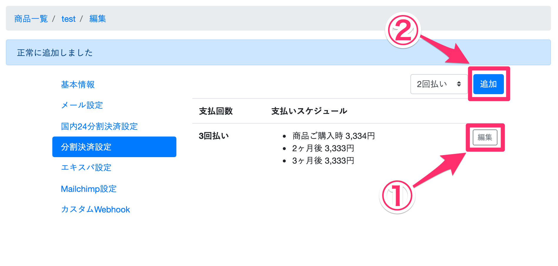 さらに追加したい場合は、右上で支払い回数を設定し「追加」ボタンを押しましょう(画像②)。