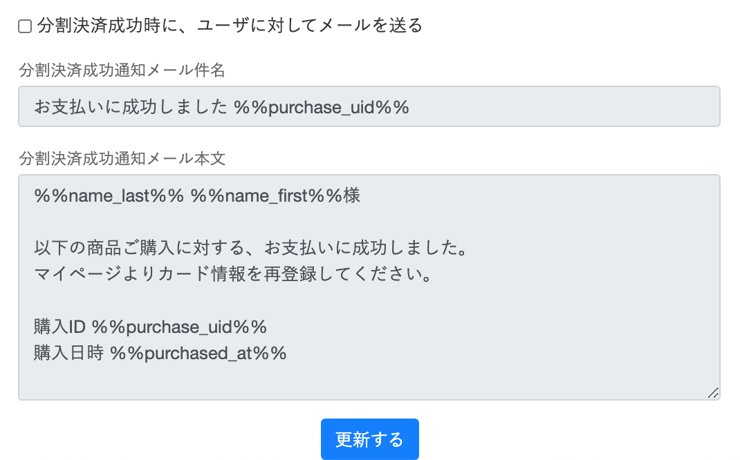 - 購入無効化時に、ユーザに対してメールを送る(分割決済失敗時)