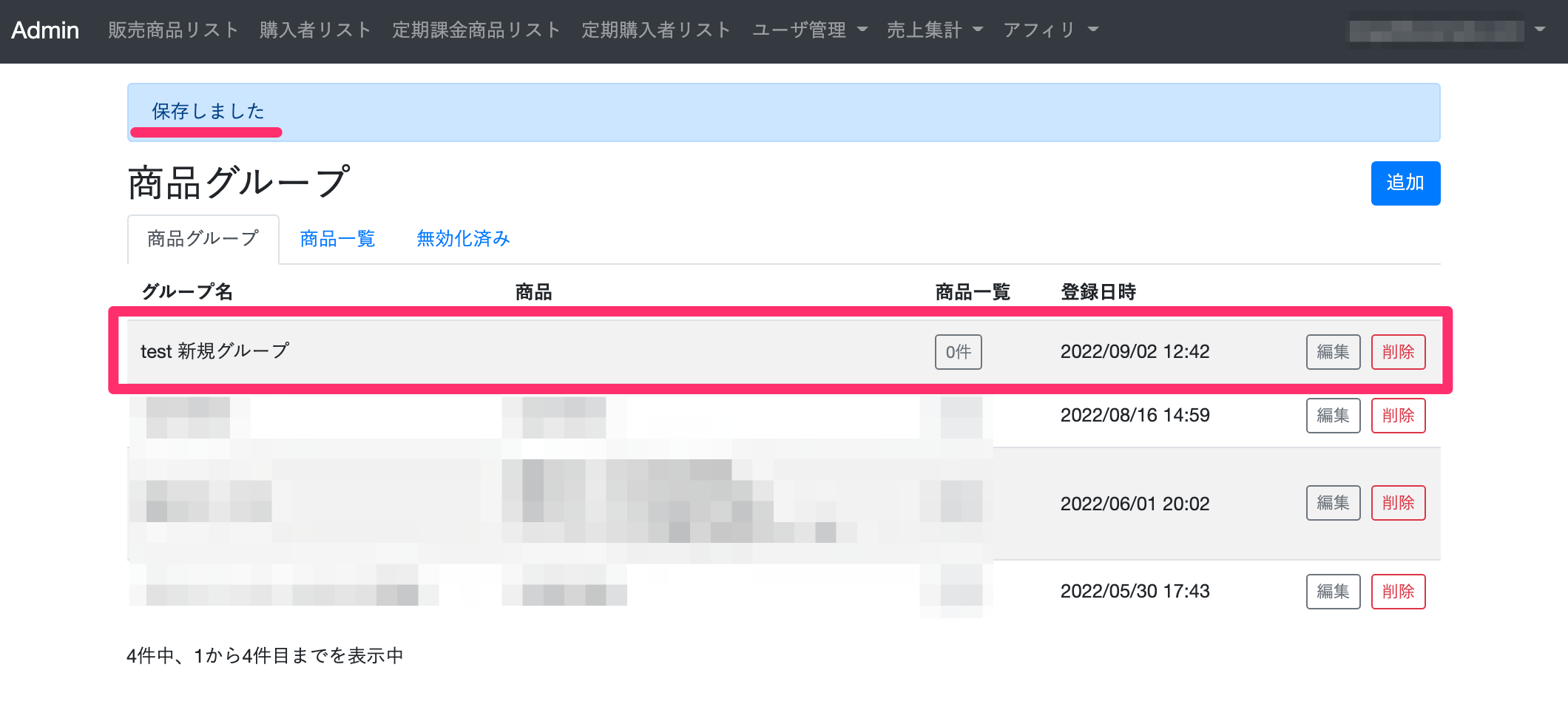 商品一覧のタブをクリックし、追加したい商品の「編集」ボタンを押します。
