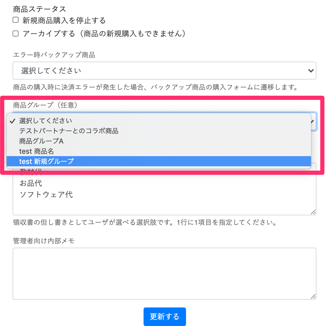 同じ商品で複数の分割メニューを用意したときなど、まとめて管理できたら便利ですよね。そういうときは同じ商品グループに設定しましょう。